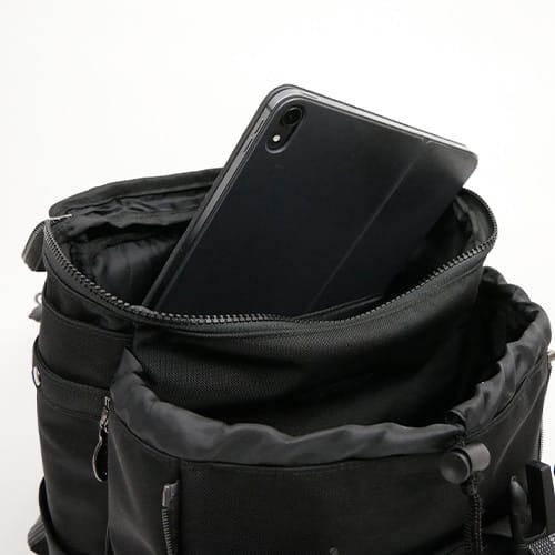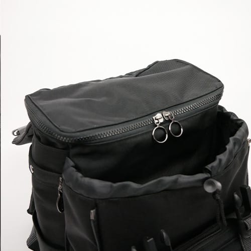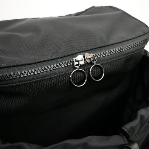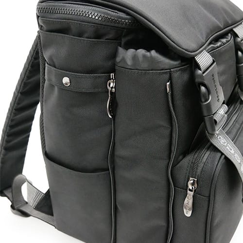 サイドのマチはジッパーで開閉可能なので用途に応じて収納力を調整出来ます。