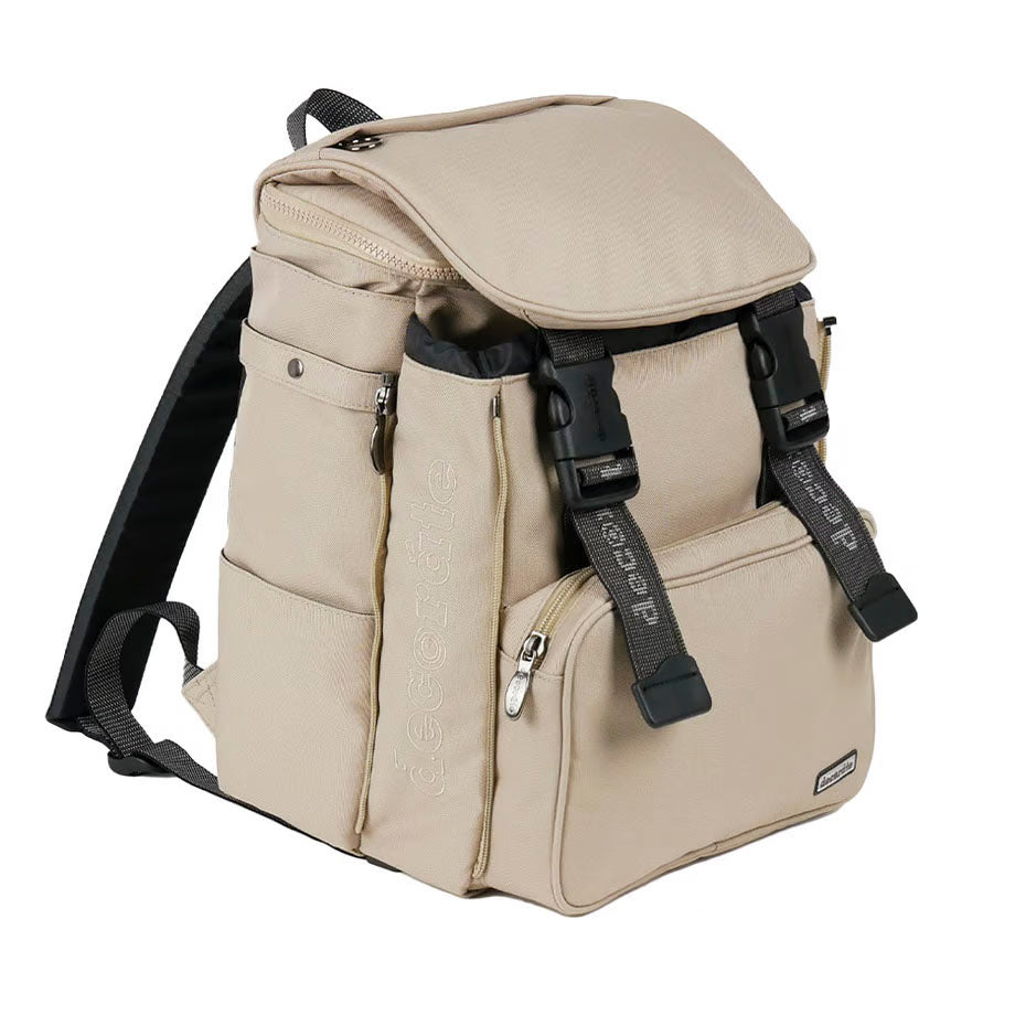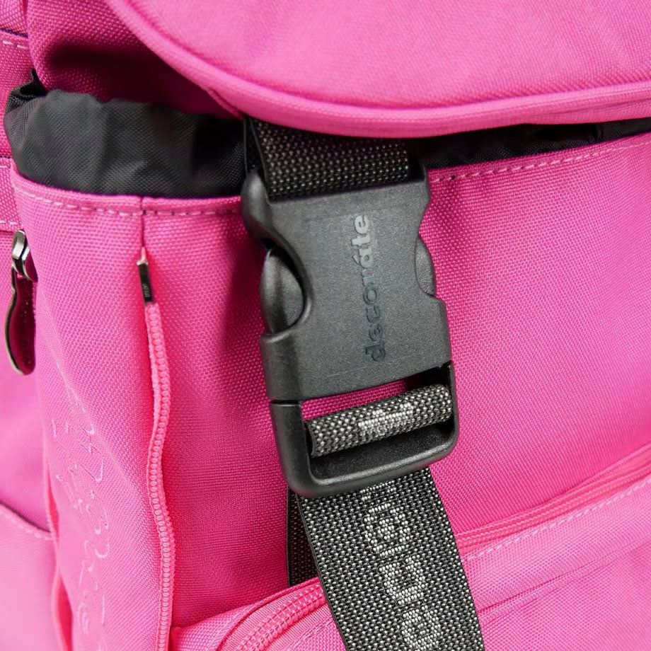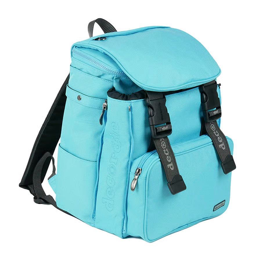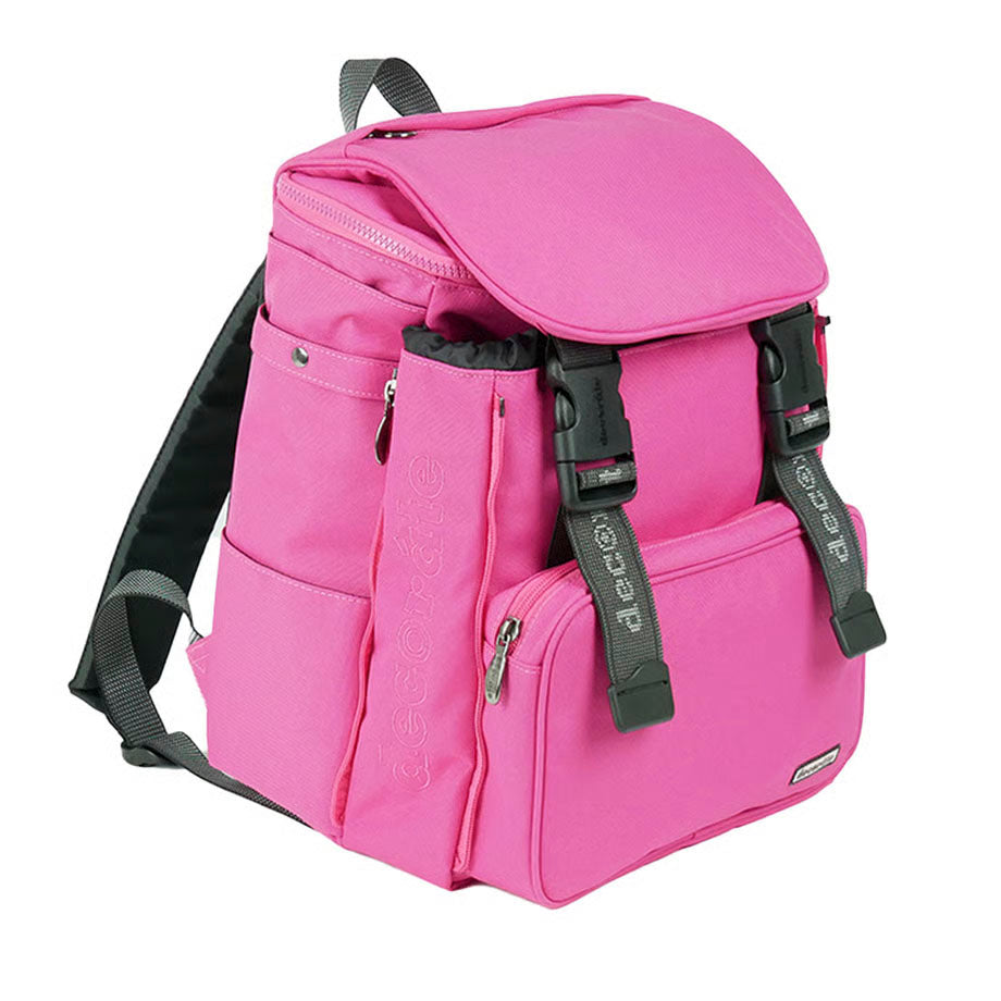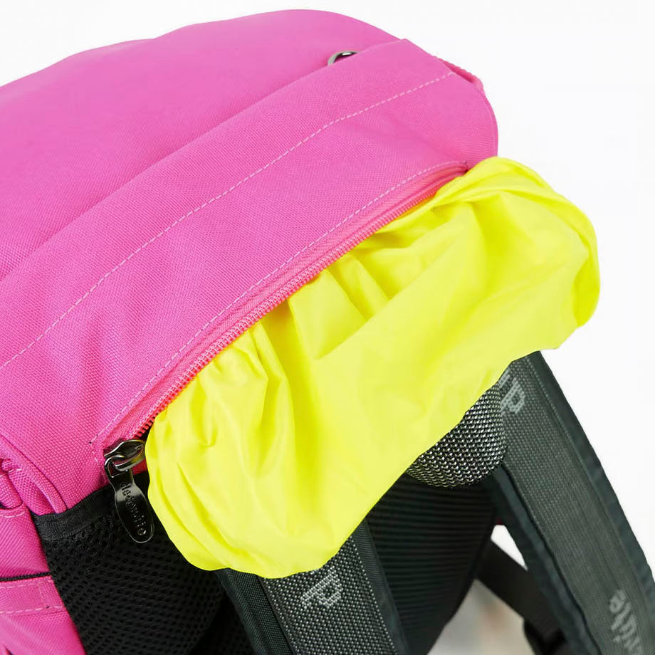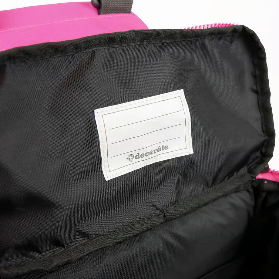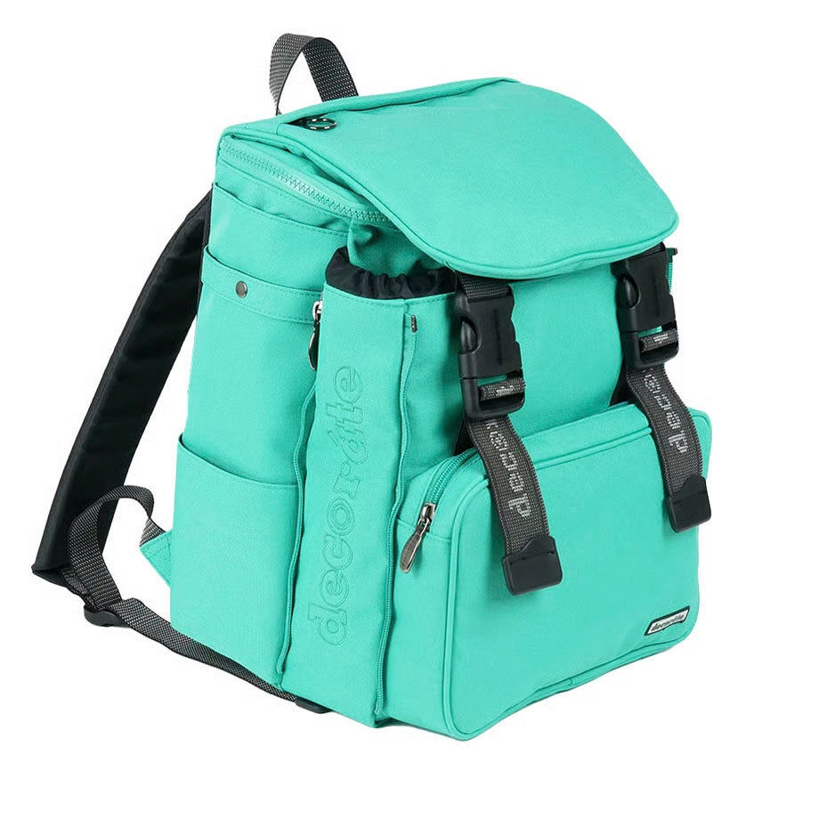 【いろんなシーンに対応する高い機能性】 ファスナー付きポケットを備えたフラップをめくると、ファスナーで開け閉めできるメインコンパートメントが。少し大きめのリングが付いたこのファスナー、弱い力でもスムーズに動くので、まだ小さなお子様でも安心して使うことができます。 メインコンパートメント内には、タブレットスリーブを標準装備。そしてそれ以外にはあえてポケットなどを設けず、シンプルな箱型にデザインしているので、必要な荷物をどんどん詰め込めます。 そんなメインコンパートメントの外側には、両サイドにファスナーを備えたサブコンパートメントが。こちらはファスナーでコンパートメントの奥行きを詰めたり広げたりできるので、荷物が少ないときにはコンパクトなシルエットで使うことが可能です。 フラップや本体外側には、ファスナー付きのポケットを備えているので、失くしてしまいがちな小物は仕分けて収納できます。 また、メインフラップには収納式のレインカバーを内蔵。ファスナーから引き出してそのまますっぽりと全体に被せるだけなので、急な荒天でも安心です。 そのほか、少し厚みを持たせてクッション性を高めたショルダーベルトや背面パッドで、子どもの小さな肩や背中への負担を少なくする工夫も。 できるだけ多くのお子様に、いろんなシーンで快適に使ってほしい。 decorateのバックパックには、そんな思いと機能性を盛り込んでいます。