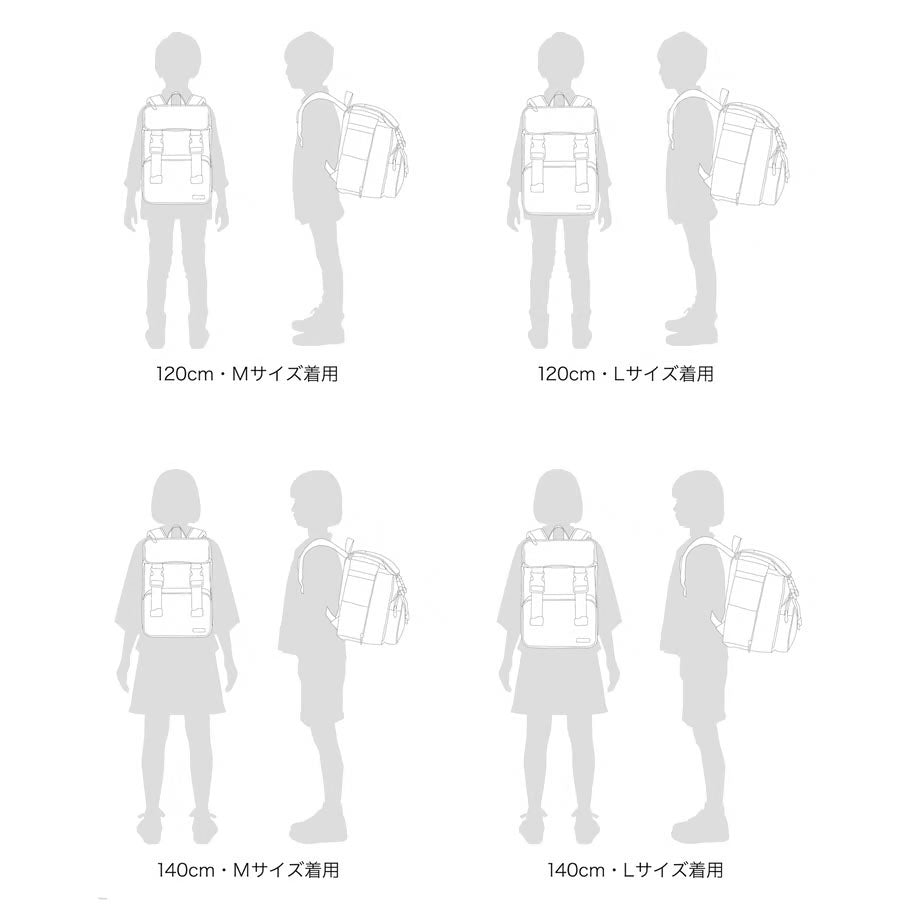 ●サイズ比較 Mサイズ:W24×H32×D12(18)cm (約890g) Lサイズ:W27×H38×D14(20)cm (約960g)