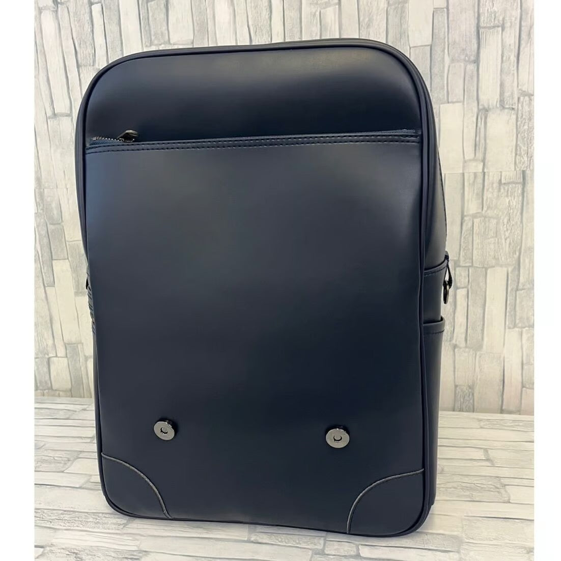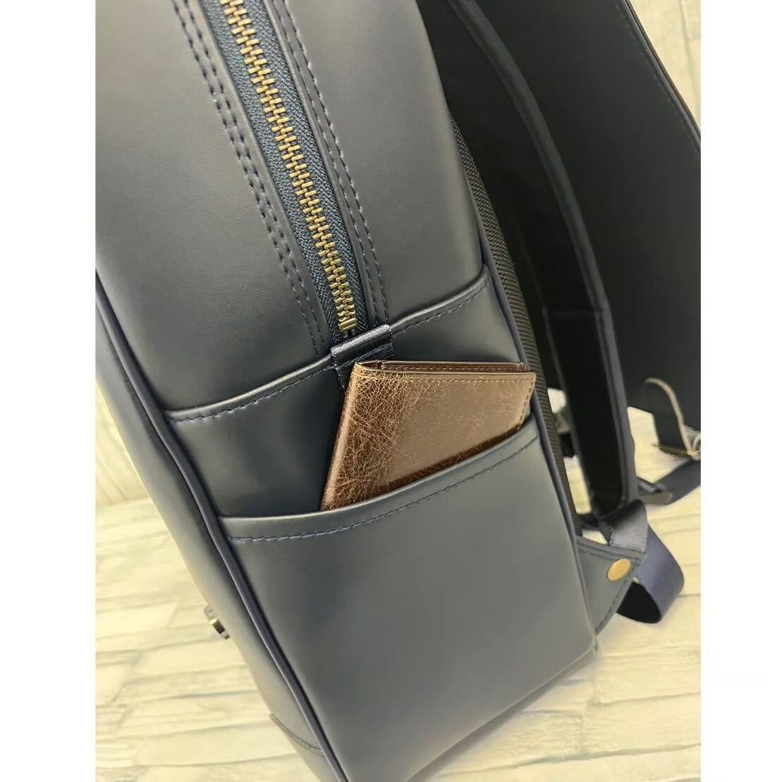 リュック内側には、落ち着いたブルーの裏地を使用し、内側にオープンポケットを2つ取り付けました。背中側のA4サイズのオープンポケットにはクッション性を持たせ、薄手のPCやタブレットなどを入れてお持ちいただけます。用途に応じてポケットを使い分けることができます。