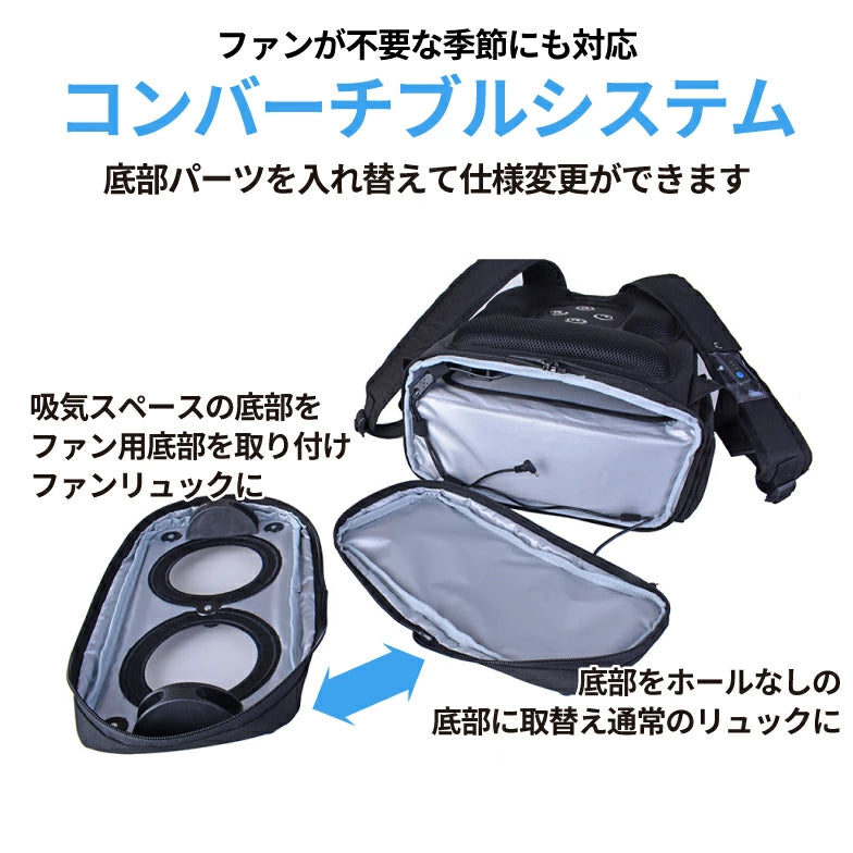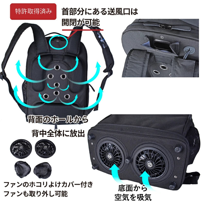 特許を取得したファンを取り付けられる新しいタイプのリュック。