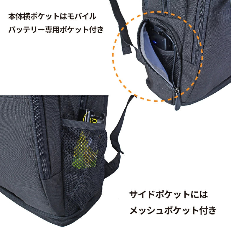 本体横ポケットは、モバイルバッテリー専用ポケットとなります。